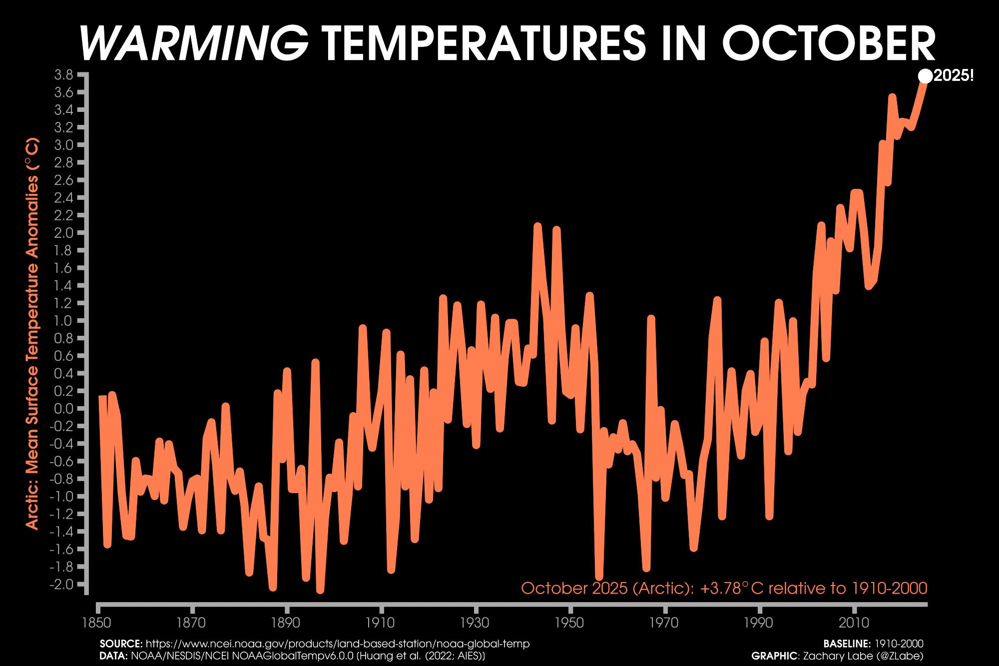 The Arctic had been warming at "four times" the global rate based on a 40 year average. In 2025, it is warming at more than 20 times the global rate in certain intervals, with localized anomalies exceeding 22°C above historical norms.