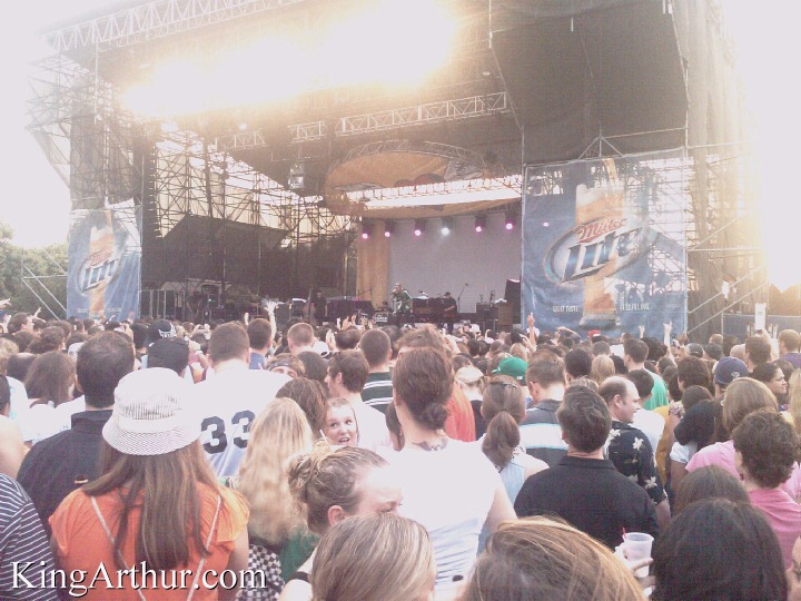 During the storm, the crowd was advised to go into the enclosed area for their own safety. All of a sudden, Bushwalla got up on a chair and started playing. Bushwalla is a good friend of Jason Mraz. For quite some time, they were roommates. Besides MC’ing the show, Bushwalla is an accomplished singer and songwriter. It was nice to see his enthusiasm and spunk up-close and in-your-face. By the end of his impromptu set, the whole crowd was singing along to “Ghetto Blaster.”